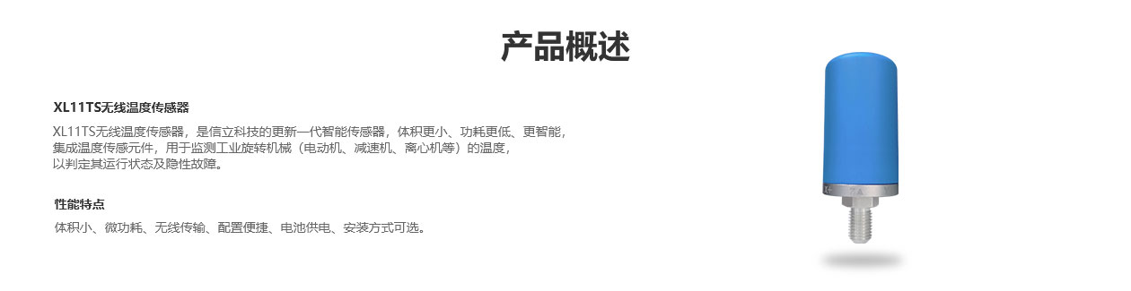 XL11TS无线温度传感器,是云顶7610线路检测中心科技的更新一代智能传感器,体积更小、功耗更低,更智能。集成温度传感元件,用于监测工业旋转机械(电动机,减速机,离心机等)的温度以判定其运行状态及隐性故障。